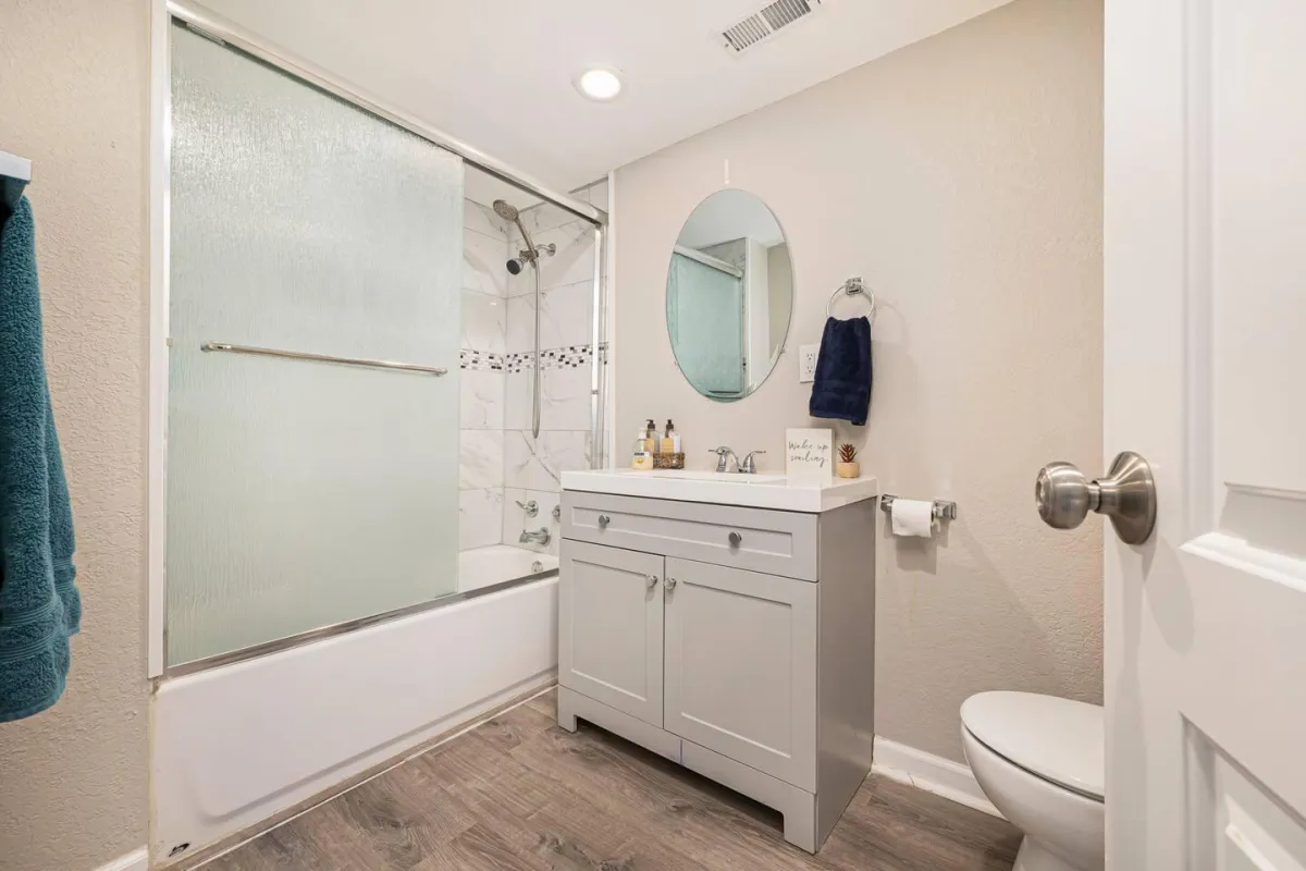 Relax on the private deck or take advantage of the detached 2 car garage. Perfectly located near shopping, dining, and entertainment, this home is ideal for families, couples, or business travelers.